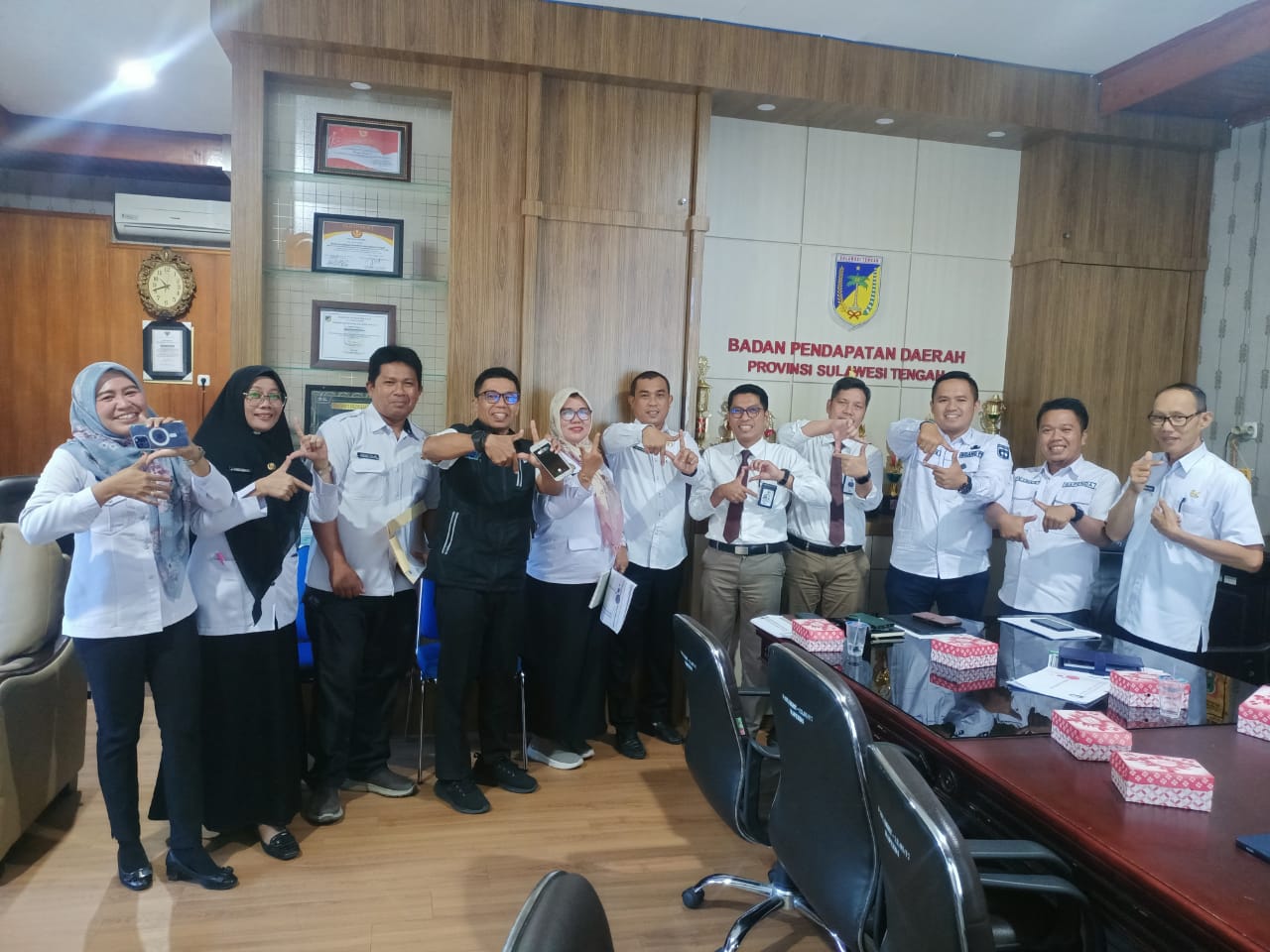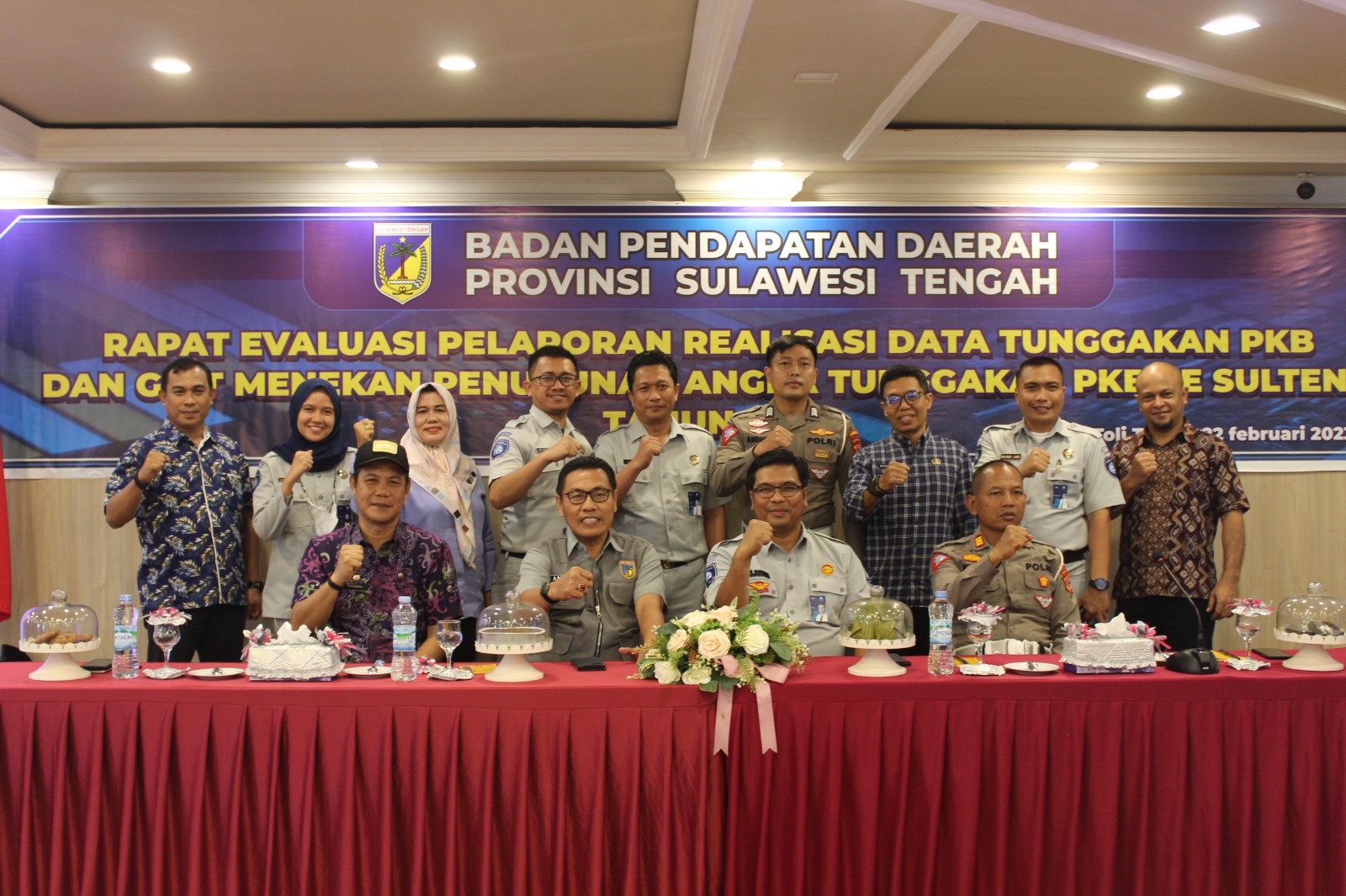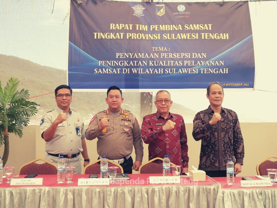 Kepala Badan Pendapatan diwakili Kepala Bidang Pengelolaan Pendapatan Daerah, Mustaqim Karim, bersama Pembina Samsat Provinsi sulawesi Tengah, Kepala PT Jasa Raharja Cab. Sulawesi Tengah, Teguh Afrianto, Kasie STNK Ditlantas Polda Sulteng, Kompol Suriadi, menggelar rapat bersama instansi terkait dalam rangka percepatan program Tim Pembina Samsat Provinsi Sulawesi Tengah Tahun 2024.