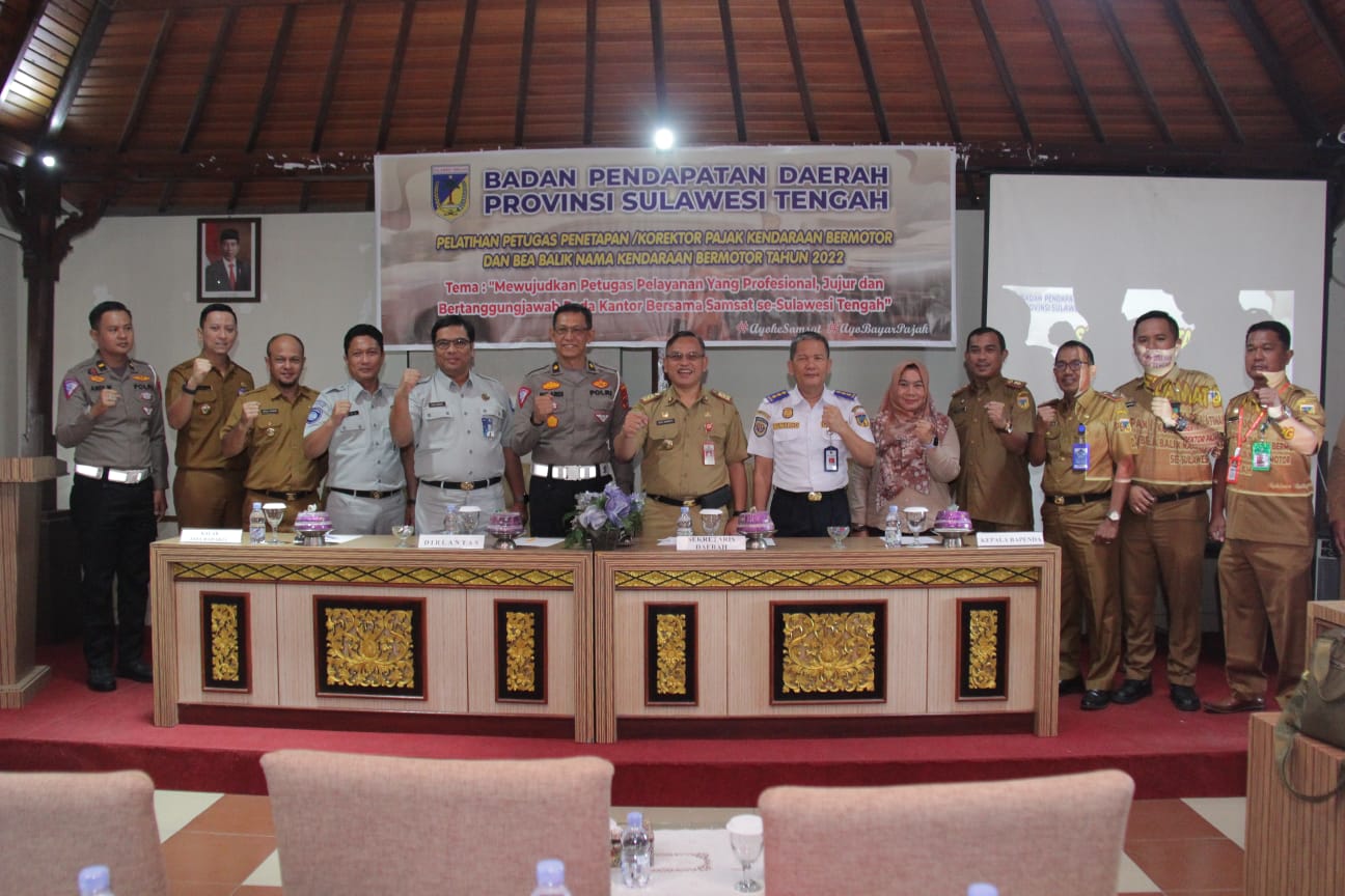 Plh Sekretaris Daerah Provinsi Sulawesi Tengah Dr.H.Rudi Dewanto,SE,MM secara resmi membuka kegiatan Pelatihan Petugas/Korektor Pajak Kendaraan Bermotor dan Bea Balik Nama Kendaraan Bermotor Tahun 2022, bertempat di Hotel Parama Su, Selasa (13/12).
