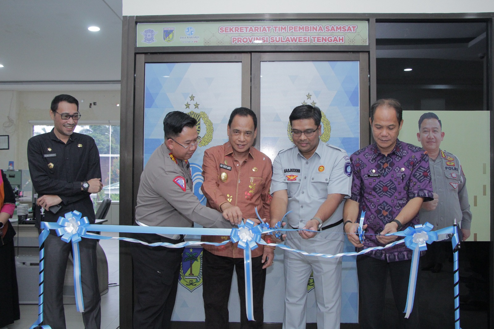 Kamis (2/2) Wakil Gubernur Sulawesi Tengah Ma'mun Amir didampingi Kepala Badan Pendapatan Daerah, Rifki Anata Mustaqim, Direktur Lalulintas Polda Sulteng, KBP Kingkin Winisuda, Kepala Jasa Raharja Cabang Sulawesi Tengah, Hasjuddin, serta Kepala Dinas Perhubungan, Sisliandi, meresmikan Sekretariat Tim Pembina Samsat Provinsi Sulawesi Tengah yang berada di Kantor Jasa Raharja Cabang Sulawesi Tengah Lt. 2 Jl. Kartini no. 108 Kota Palu. Oleh mantan Bupati Kab. Banggai dua periode usai peresmian tersebut mengatakan dengan adanya sekretariat Tim Pembina Samsat, kedepan diharapkan pemasukan daerah dari Pajak Kendaraan Bermotor dapat terus meningka